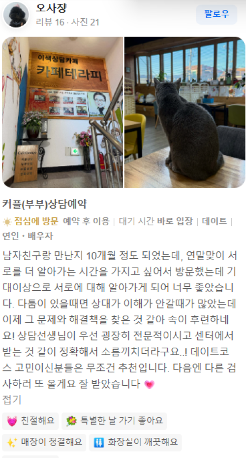 주소 : 카테라피 대학로점 (본점 직영) : 서울시 종로구 낙산길 14, 2층