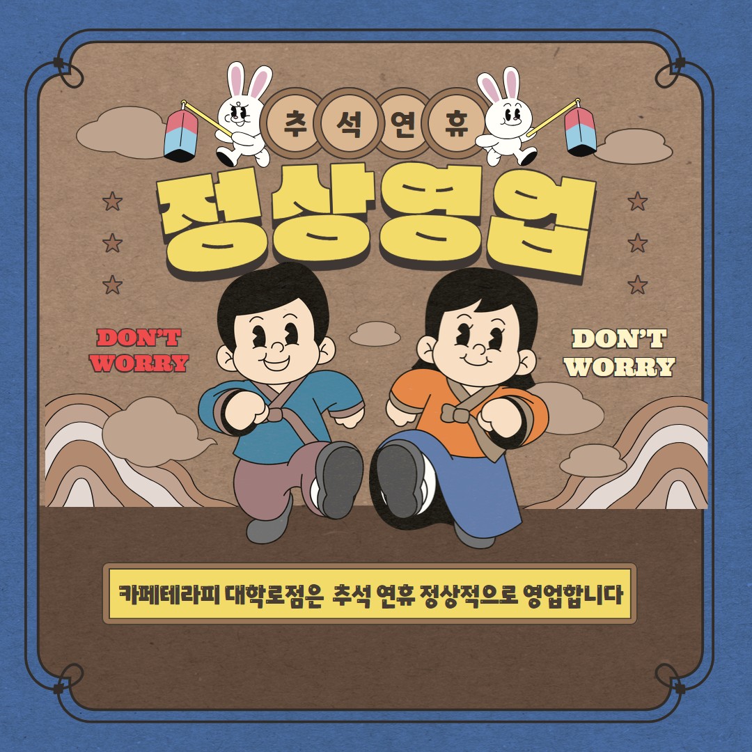 추석연휴 카페테라피 대학로점은 정상영업 합니다.