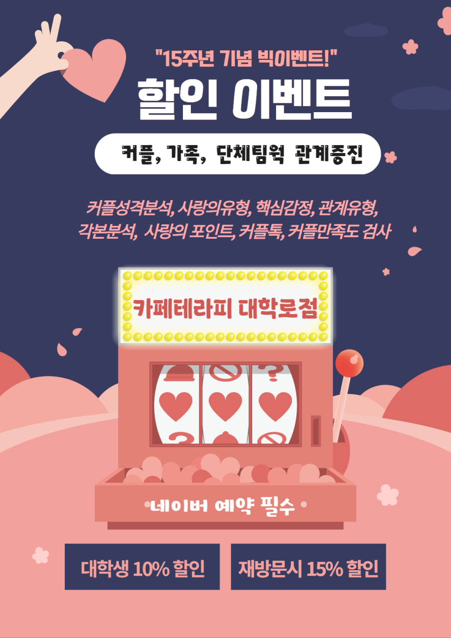 15주년 빅 이벤트 대학생 10%할인 재방문고객 15% 할인 이밴트 합니다.