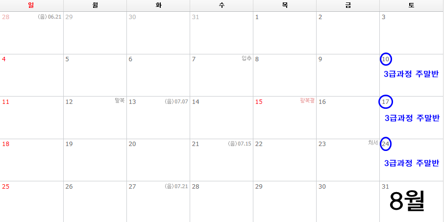 -교육일시 : 8/10,17,24 (8월 둘째주, 셋째주, 넷째주 토요일)