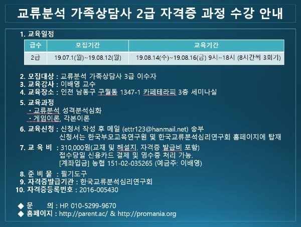 2019년 하계 교류분석2급 입박!!!